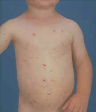Die Bläschen sind am häufigsten vorne und hinten am Körper,